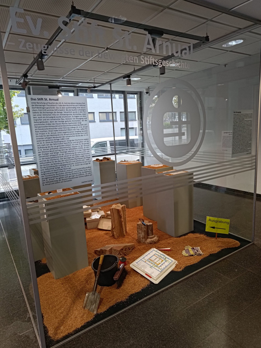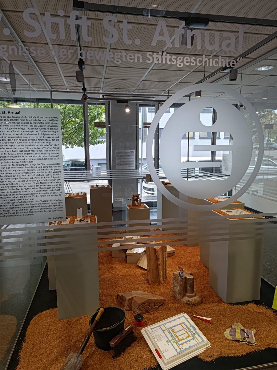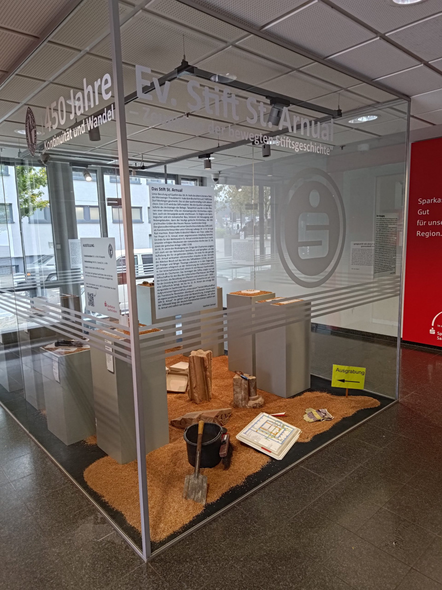 Die nachfolgenden Fotos (Archivfotos) zeigen die Ausstellung in der Sparkasse Saarbrücken am Neumarkt über die Funde in der Stiftskirche. Die Ausstellung in der Sparkasse ist beendet.